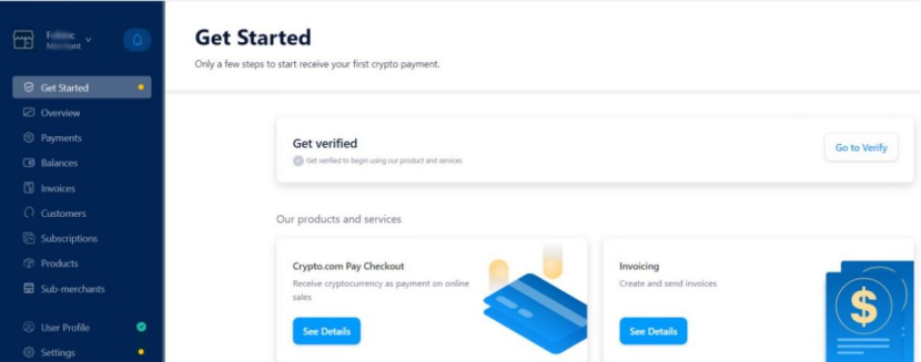 上图中显示的页面(Crypto.com Pay的"Get Started"页面)展示了潜在漏洞点:攻击者在未进行真实验证状态下,就能访问受害用户的支付、发票等模块。由于凭据泄露,攻击者可伪装成你执行操作。